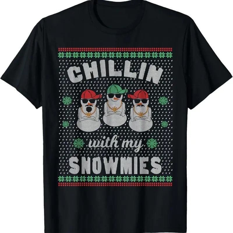 Chillin With My Snowmies Ugly Christmas Snowman T-Shirt