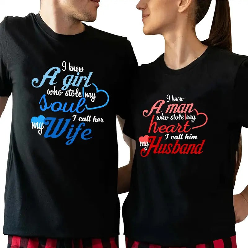 I Know A Girl Who Stole My Soul I Call Her Is My Wife, I Know A Man Who Stole My Heart I Call Him Is My Husband Couple Matching Tee