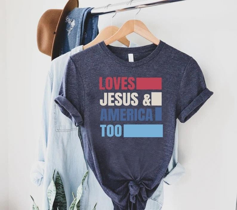 Loves Jesus and America Too Shirt, America Shirt, 4th of July Gift Shirt, Memorial Day Shirt,Independence Day Gift,Patriotic Christian Shirt