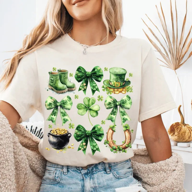 Lucky Shamrock Coquette St Patrick's Day Shirt, St Patrick's Lucky Charm Tshirt, Irish Coquette Shirt, Long Sleeve or Short Sleeve