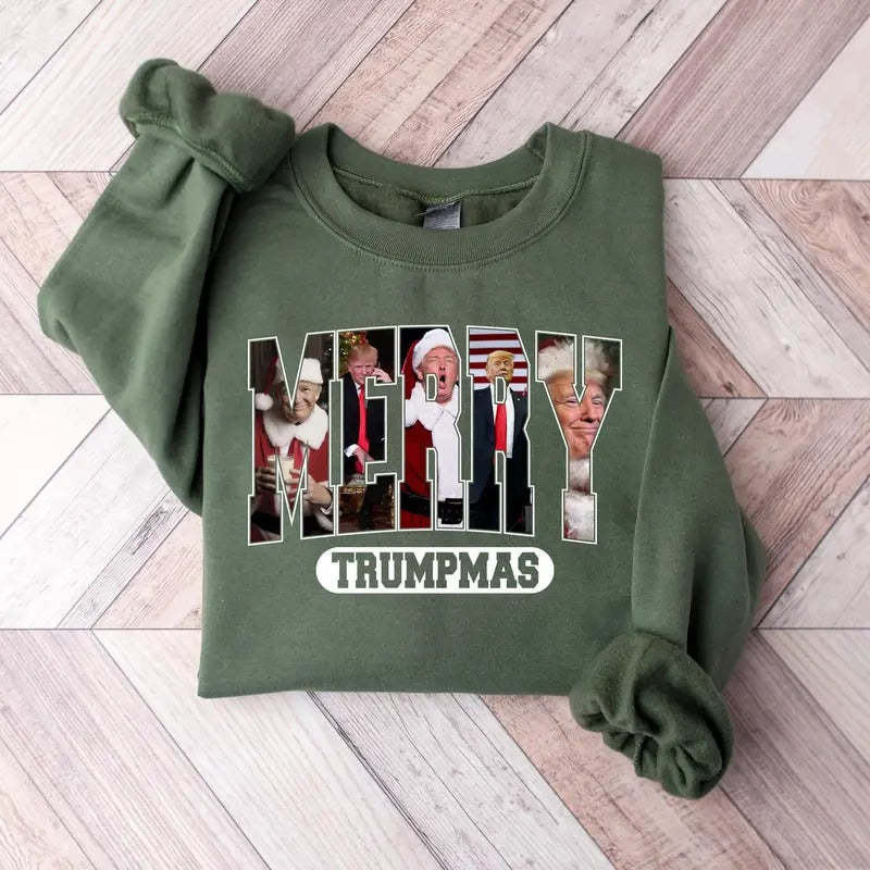 Merry Trumpmas Shirt, Trump Merry Christmas Shirt, Trump Christmas T-Shirt, President Trump MAGA Christmas 2024 Cotton Crewneck