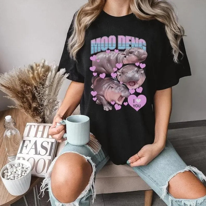 Moo Deng Shirt, Moo Deng Bouncy Pig T-Shirt, Cute Thai Baby Hippo Shirt, Pygmy Hippo Moo Deng