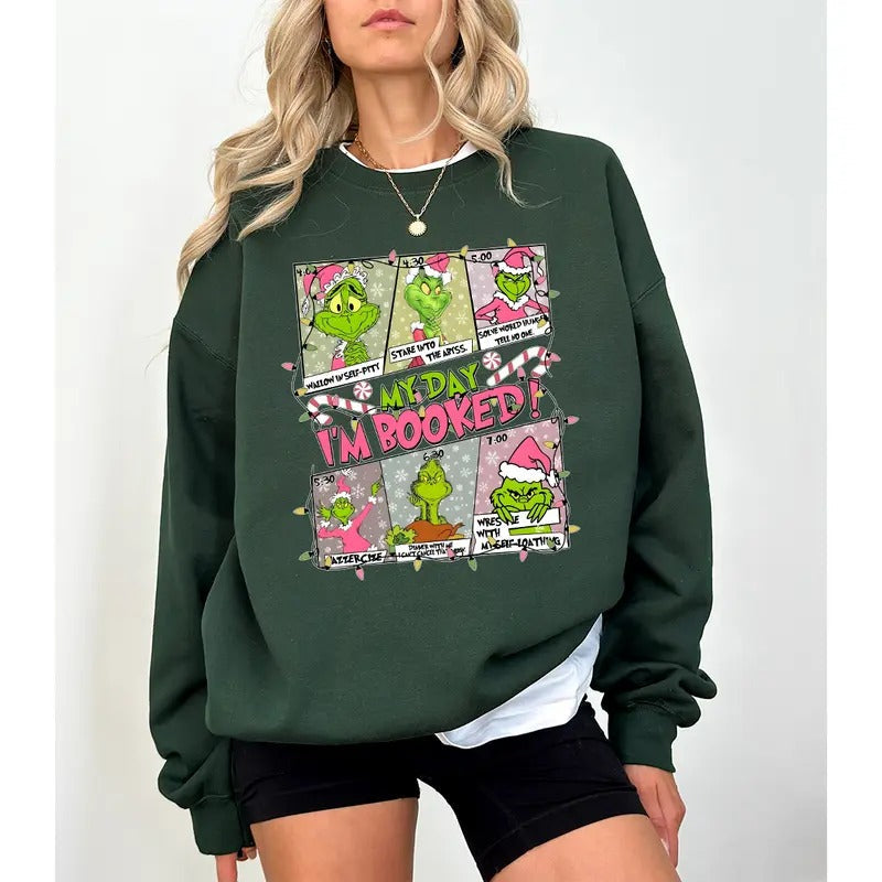 My Day Grinchmas Sweatshirt, I'm Booked Sweatshirt, Christmas Shirt, Christmas Crewneck, Christmas Gifts,, Grinchy Women Xmas, Christmas Mom Gift