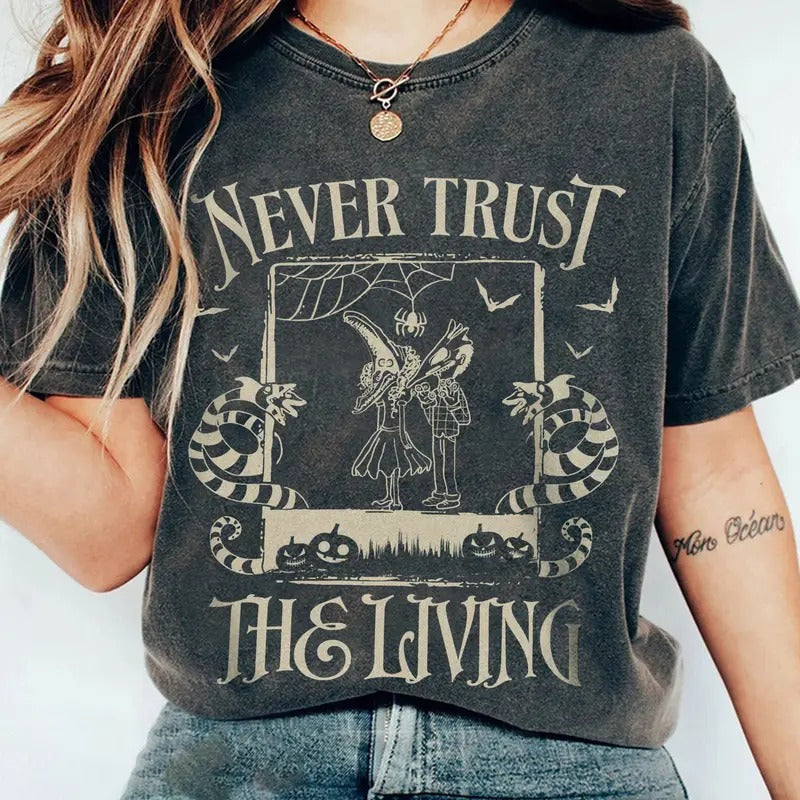N3ver Trust The L1ving Tshirt, Beetl3juice Tee, Horror Halloween Films Shirt, Unisex Short Sleeve Tee Shirt, Casual Clothing Streetwear