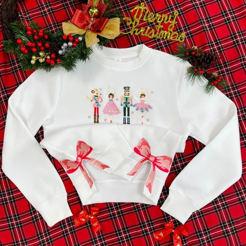 Nutcracker Ballet Side Bow Embroidery Sweatshirt, Merry Christmas Side Bow Embroidery Shirt