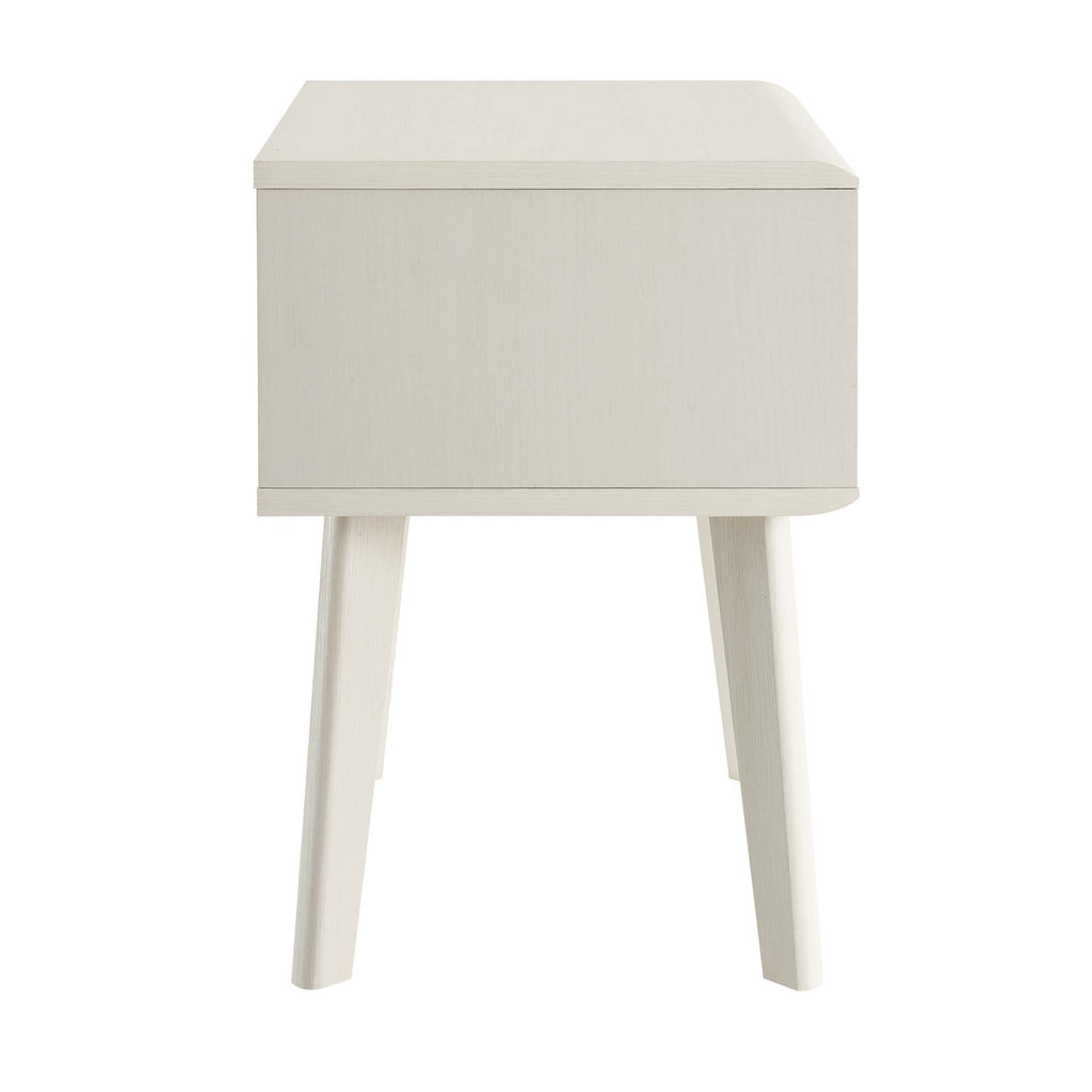 Tap into mid-century aesthetics with the Render End Table Nightstand. This bedside or living room side table features a durable particleboard frame with smooth walnut grain laminate, four tapered wood legs, and full-extension glide storage drawer. Boasting a mid-century modern style this accent table features a solid construction with a pleasing look and practical functionality. Set Includes: One - Render End Table Nightstand