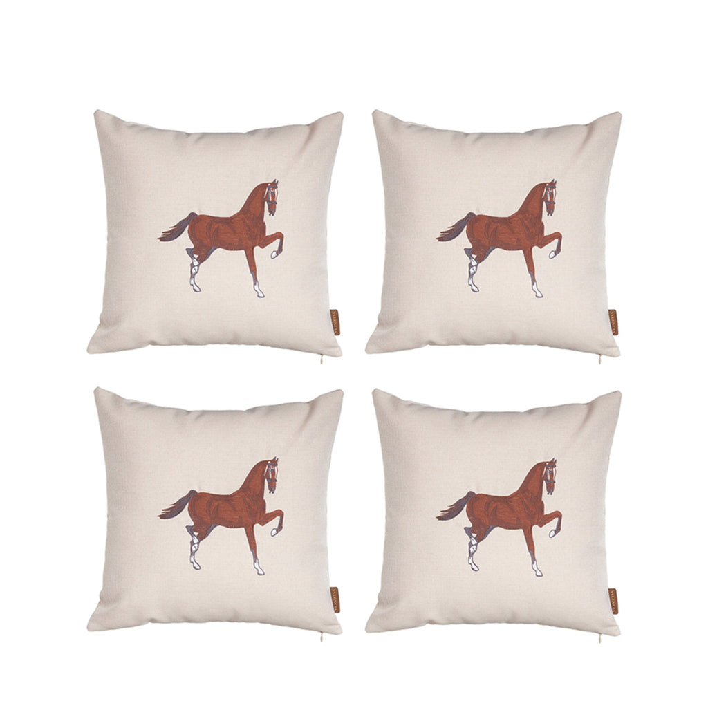 Set of Four 18" X 18" Beige Horse Polyester Zippered Pillow With Embroidery