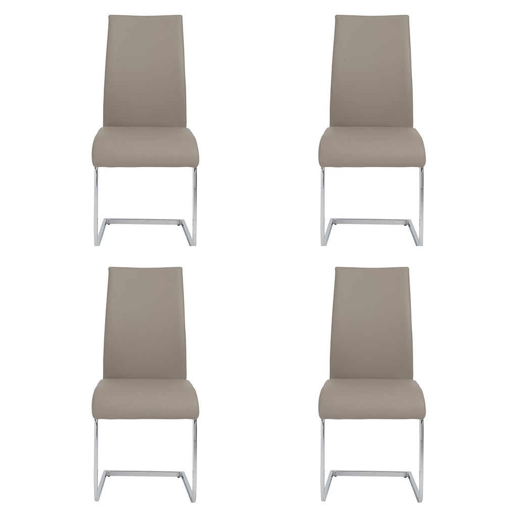 Set of Four Beige Faux Faux Leather Long Back Cantilever Chairs