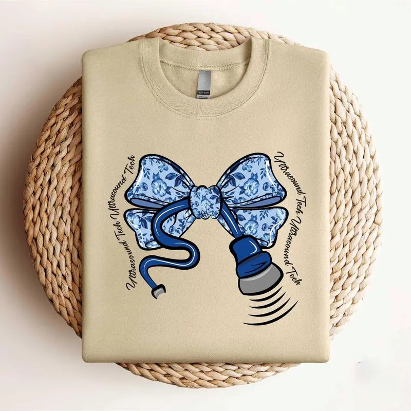 Sonographer Toile Bow Sweatshirt, Stethoscope Bow Shirt, Ultrasound Tech Shirt, Coquette Sonography Tee, Coworker Gift RDMS Fabric Man Menswear Top