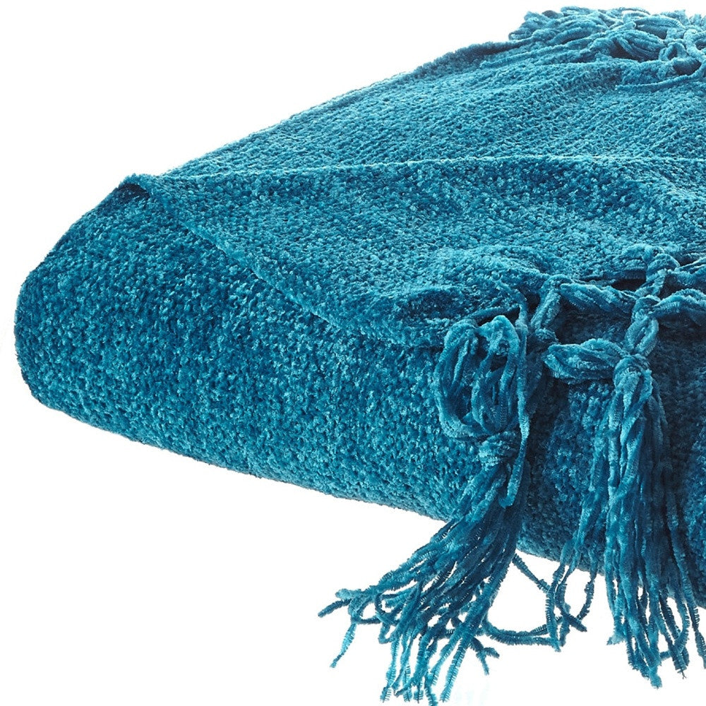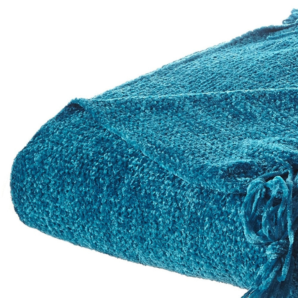 Bring warmth, comfort and style to your space with this teal blue woven polyester solid color throw blanket. Features a woven solid color design that offers sumptuous softness and texture that you'll cherish for years to come. Made from polyester this blanket will make a great addition to any room it's added to. Add extra texture to your decor and turn your room into an inviting space. This cozy throw blanket is sure to become your go-to couch companion. 0.5" H x 50" W x 60" D