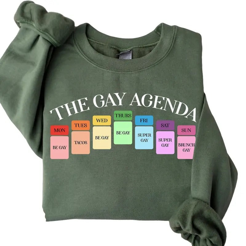 The Gay Agenda Sweatshirt, Gay LGBT Crewneck Casual Long Sleeve Sweatshirt, Bisexual Sweater, Lesbian Shirt Hoodie Motocross Menswear Tops