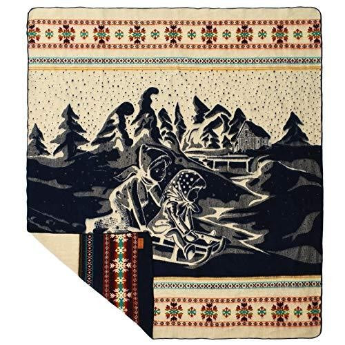 Ultra Soft Blue and Ivory Kids Sledding Handmade Queen Size Woven Blanket