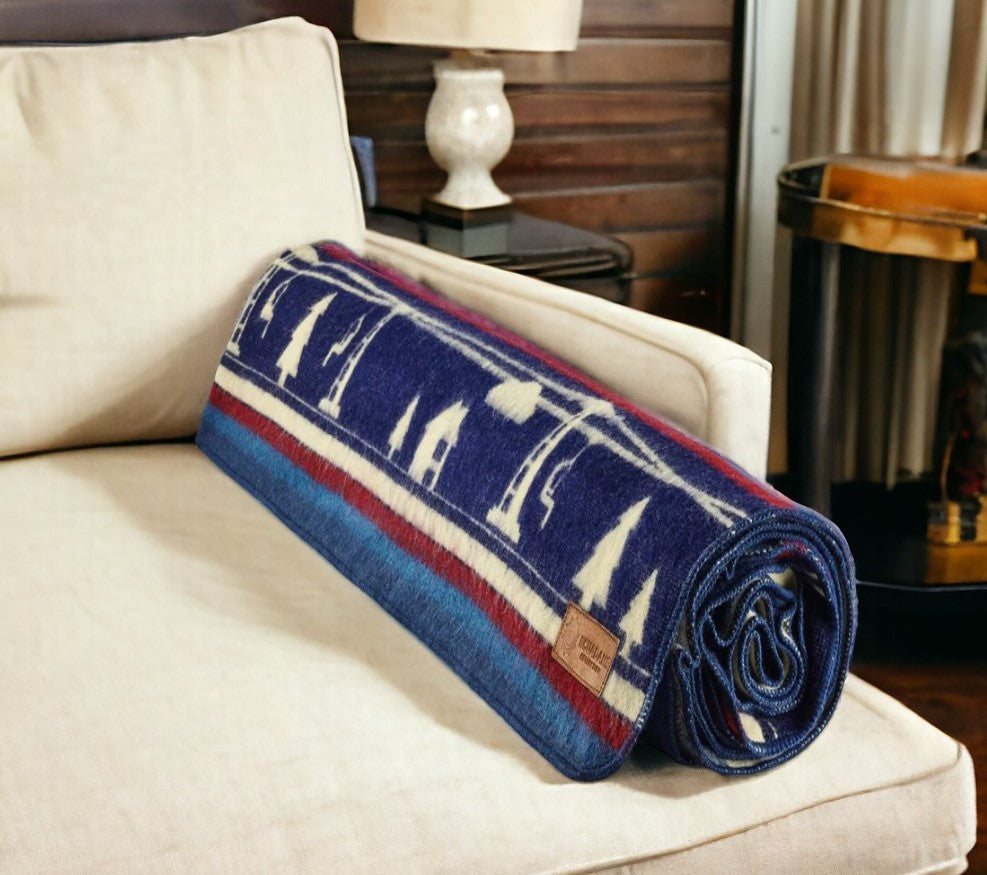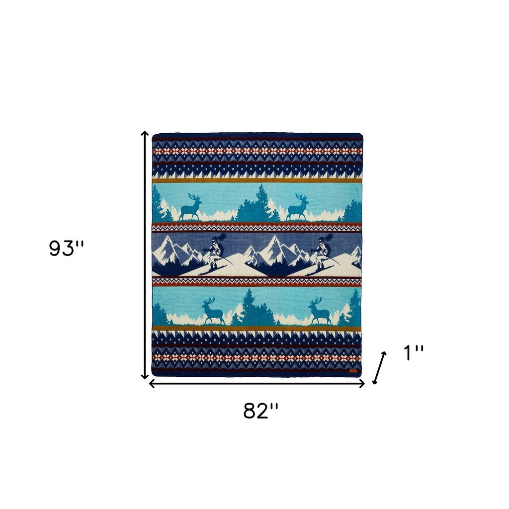 Ultra Soft Blue Ski Mountain Handmade Queen Size Woven Blanket