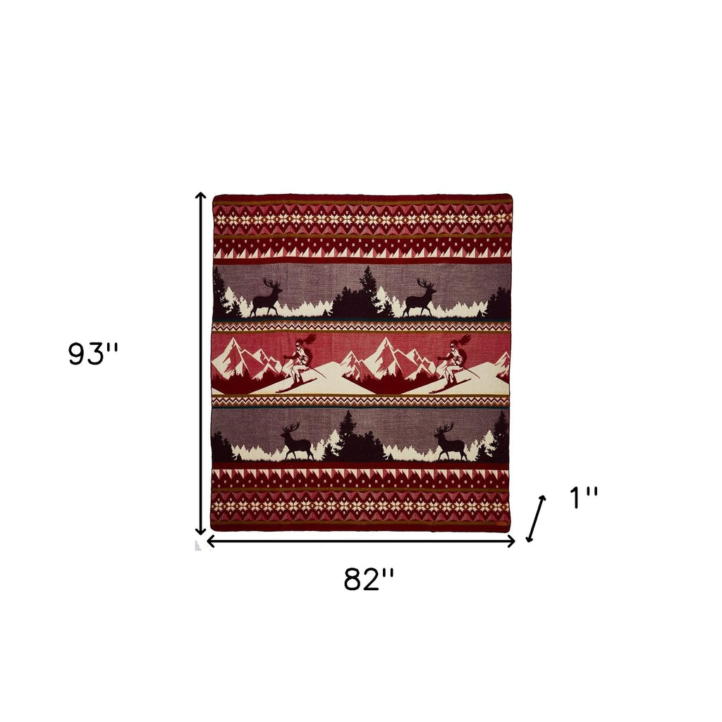 Ultra Soft Red Ski Mountain Handmade Queen Size Woven Blanket