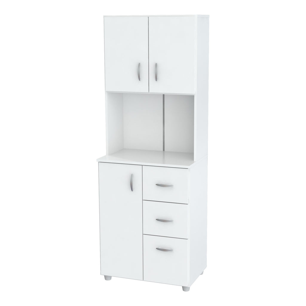 White Finish Wood High Low Full Size Microwave Cabinet