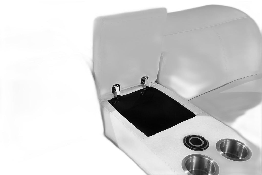 Take your relaxation to the next level with this super soft and comfortable white italian leather power reclining u shaped six piece corner sectional with console. The high-end premium leather used makes your lounging luxuriously comfortable and adds an elegant appeal to your space. Solid colors give you lots of decorative options and are easy to work into your decor scheme. For the ultimate in relaxation, this sectional includes power - push button recline that turns it into a comfy lounge for sleeping or resting. Silver metal legs effortlessly elevate the room and add a touch of contemporary design. Great for everyday lounging and for entertaining, sectionals are an ideal way to seat multiple people. 35-inch H x 123-inch W x 110-inch D
