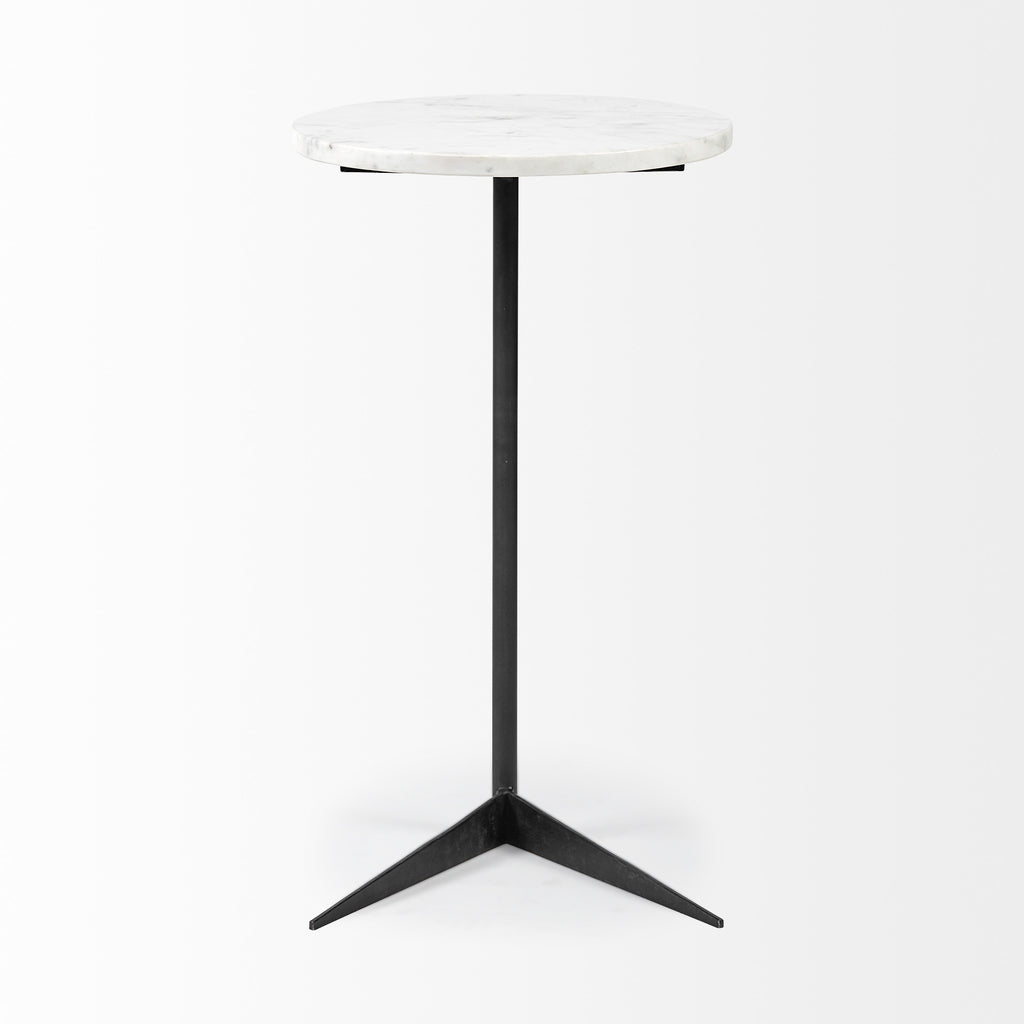 Featuring an extravagant, circular white marble top, a stunning side table that is guaranteed to elevate your decor game. The elegant crackled white marble top is braced by a sleek, matte-black polished metal frame that not only stabilizes the top to perfection but also adds to the visuals of this piece. The juxtaposition of crackled white marble tones and polished metal makes this a great choice for spaces based on the design styles.