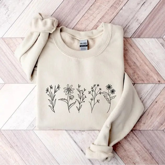 Wildflowers Sweatshirt, Flower Crewneck Sweatshirt, Floral Sweatshirt For Women, Flower Lover Sweatshirt, Flowers Hoodie, Women Gift