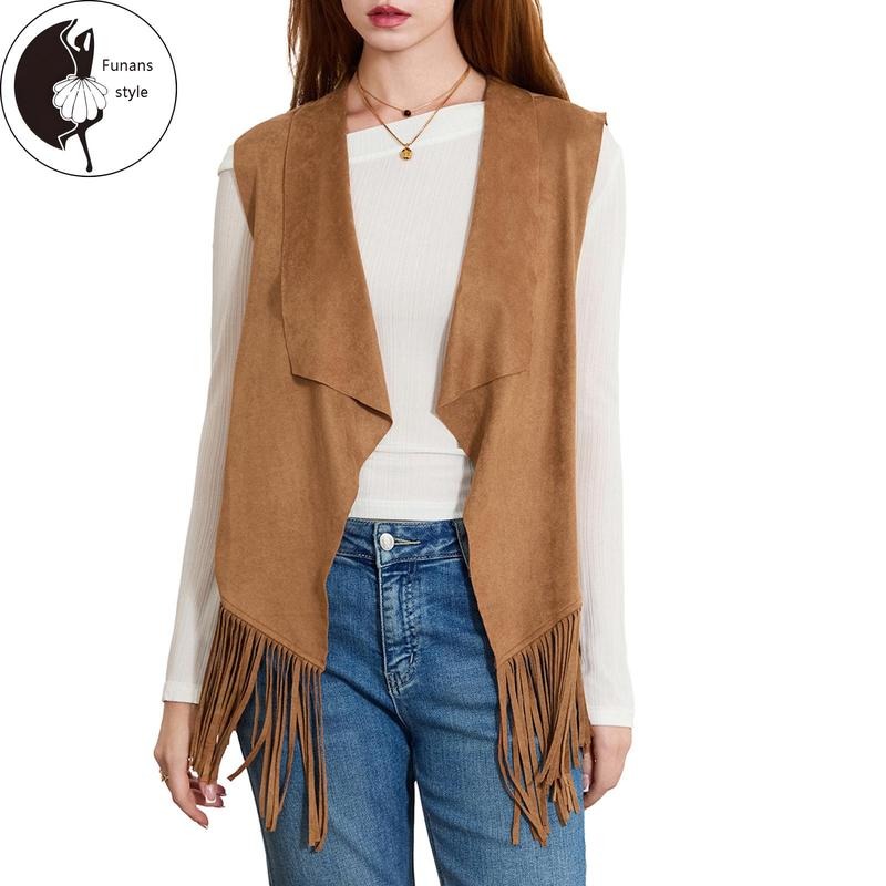 Womens Tassel Vest 70s Hippie Costume Sleeveless Cowgirl Western Outerwear