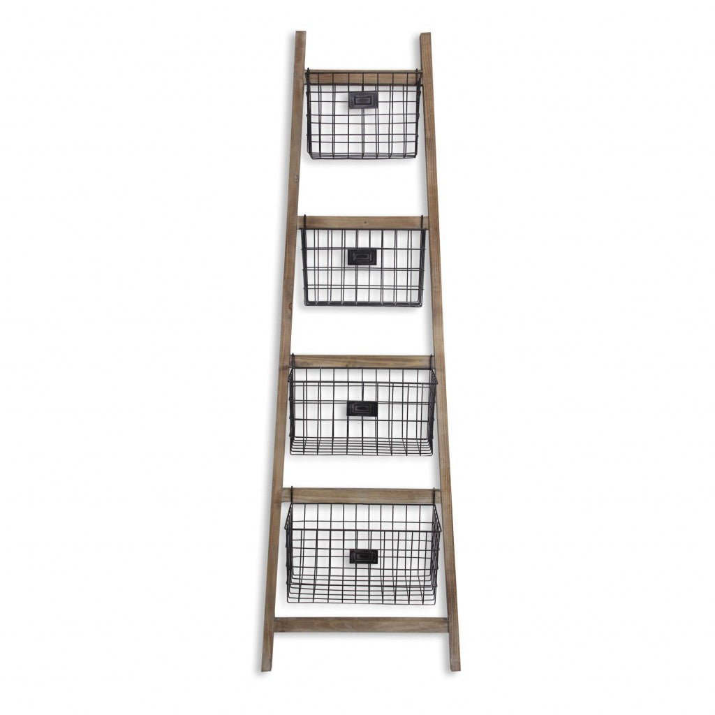 Storage ladders are a trendy and stylish option for the home decorator looking to add a bit of warmth to their home while still maximizing on all available space. Perfect for a wide variety of spaces and themes, this piece in particular features a 5 rung ladder and 4 uniquely sized storage baskets. With its handcrafted construction and its natural look and feel, this piece will provide a wonderful storage option that is both elegant and functional.