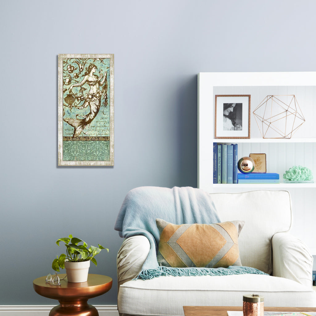 Aqua Blue Distressed Driftwood Mermaid Wall Art