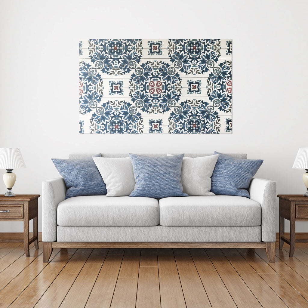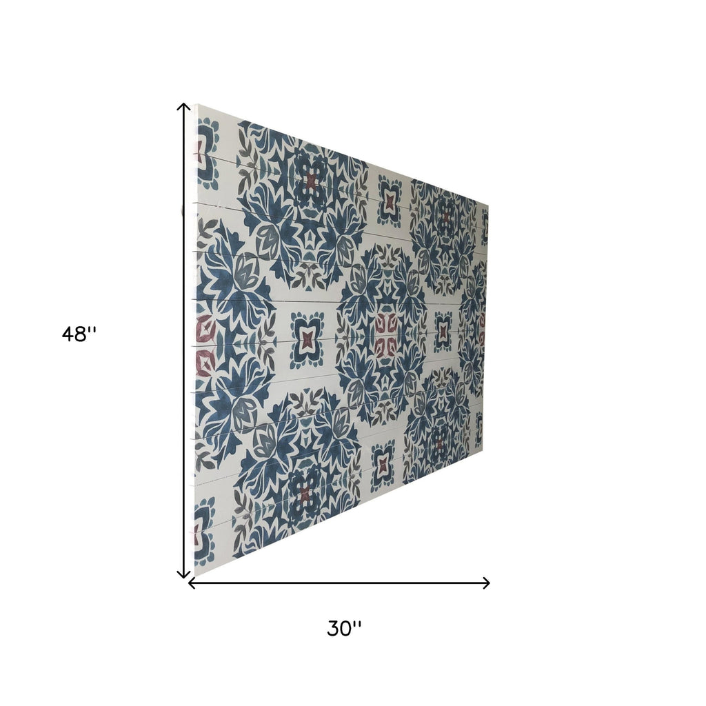 Add an air of fashion to your room and rejuvenate the space with this azulejo floral pattern wood plank wall art. Reproduced for you on wood, this hanging decorative accent will be a trendy and fashionable way to dress your walls in a rustic and modern farmhouse vibe. Hang on your wall to add some up to date fashion and decoration. Instantly liven up your space with this art that brings color and dimension to your walls. 30 inches H x 48 inches W x 1.2 inches D