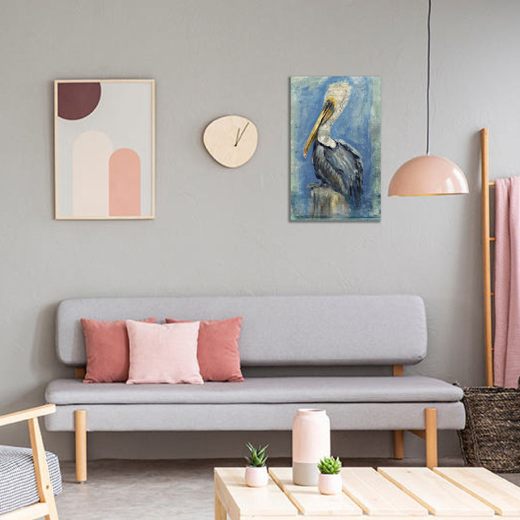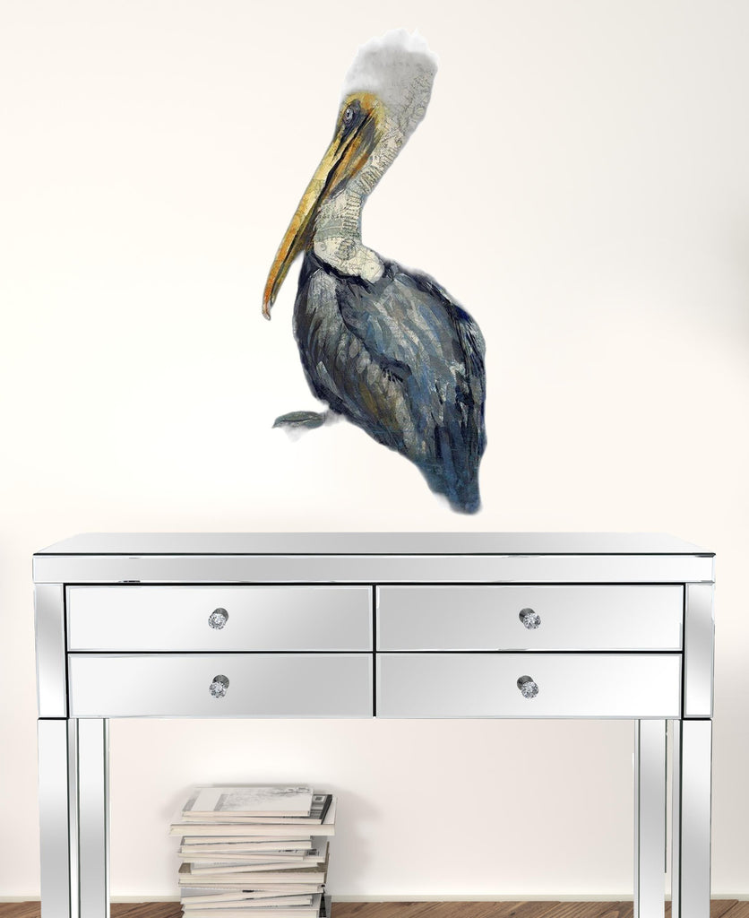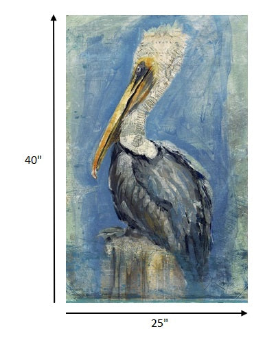 The Blue Watercolor Pelican Wall Art features a big pelican artistically painted in blue with the subtle background of a map. This unique and vintage looking piece would be a nice addition to any beach house, living room, office, or bedroom. Printed on genuine on distressed wood containing knotholes and other natural imperfections this beautiful water color can be part of a rustic, nautical, coastal, or bird decorative motif. 32" x 20" x 2".