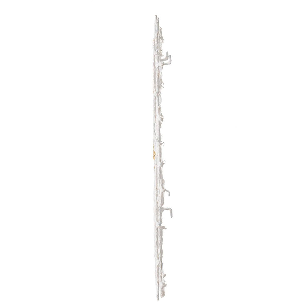 Elevate the blank canvases of your modern interior with this uniquely designed Contemporary White and Gold Geo Grid Wall Art. The paint-like geometric grid pattern is beautifully brushed in white while the specks of golden accents add to a modern charm while accentuating a sophisticated look. This sophisticated wall décor is skillfully crafted from iron and paper for enhanced durability and versatility. Wrapped in modern simplicity with a playful flair, this wall décor will be the perfect piece of contemporary art to allure the gaze of the guests. Generous in size this piece will be a great centerpiece for your space. 26.2” x 31.9” x 1.7”