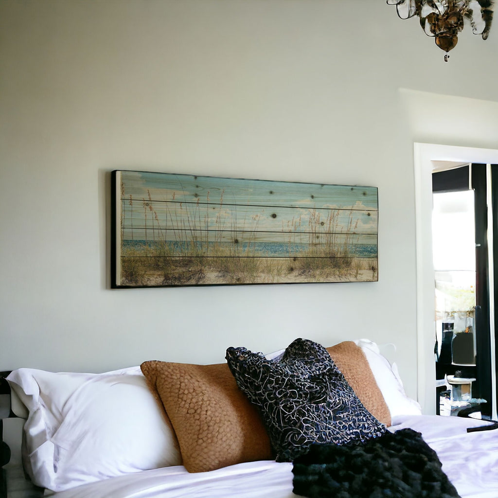 Add an air of fashion to your room and rejuvenate the space with this long ocean sand dunes unframed photograph wall art. This photograph is a visual artistic expression that allows you to decorate your space in style. The multi-color photography style makes this photographic art appealing and gives it visual interest. Unframed, this mounted with backing art has a fresh and distinct taste to grace your walls with style. Reproduced for you on wood, this hanging decorative accent will be a trendy and fashionable way to dress your walls in a rustic and modern farmhouse vibe. Adding this hanging wall art to your space to make your room feel more finished and attractive. Utilize this opportunity to create a focal point in the room with this fabulous wall decor option. 12 inches H x 36 inches W x 1.2 inches D