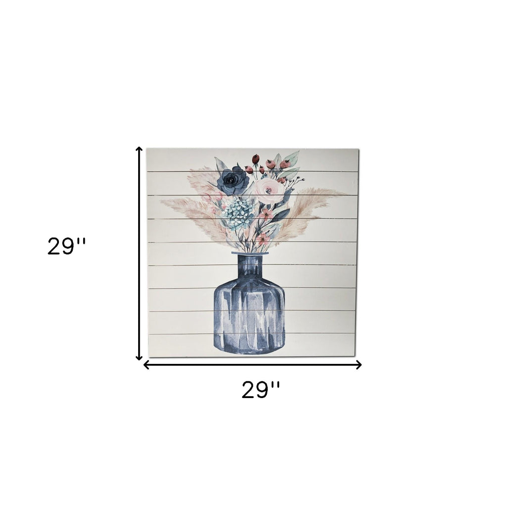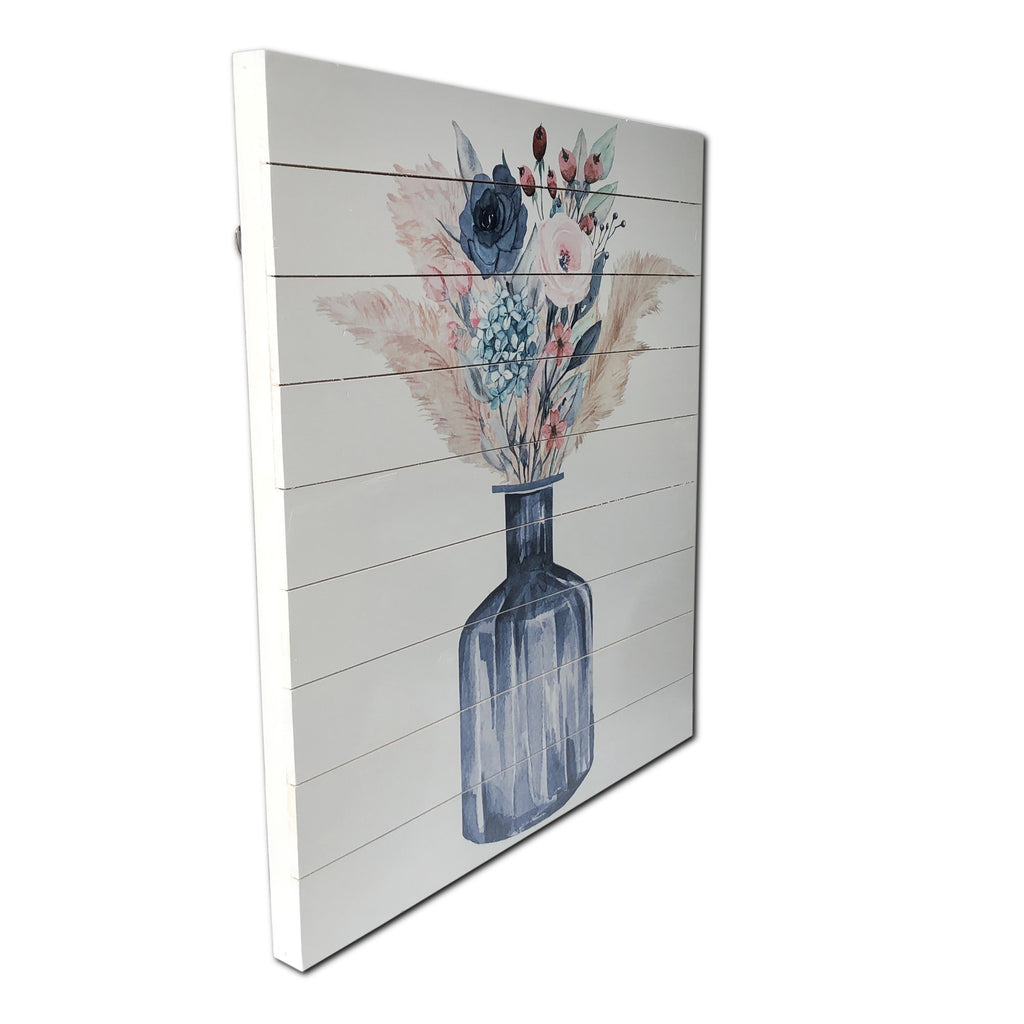 Bring some sizzle to your space with this eye-catching pampas leaves and flower bouquet wood plank wall art. Reproduced for you on wood, this hanging decorative accent will be a trendy and fashionable way to dress your walls in a rustic and modern farmhouse vibe. Hang on your wall to add some up to date fashion and decoration. Instantly liven up your space with this art that brings color and dimension to your walls. 29 inches H x 29 inches W x 1.2 inches D