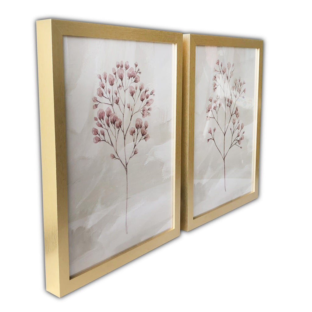 Add an air of fashion to your room and rejuvenate the space with this two piece blush pink branch framed wall art. Reproduced for you on paper, this hanging decorative accent will be a trendy and fashionable way to dress your walls. Adding this hanging wall art to your space to make your room feel more finished and attractive. Utilize this opportunity to create a focal point in the room with this fabulous wall decor option. 20 inches H x 32 inches W x 1.5 inches D