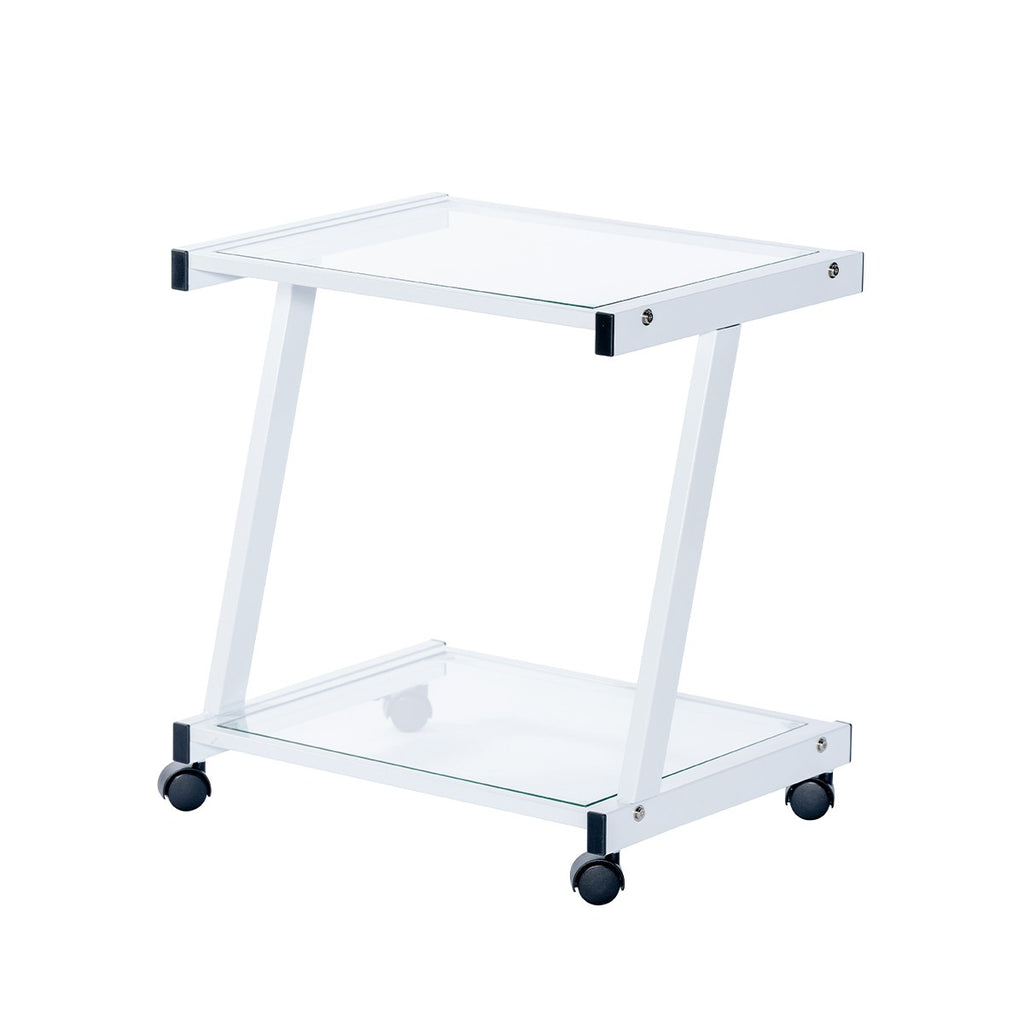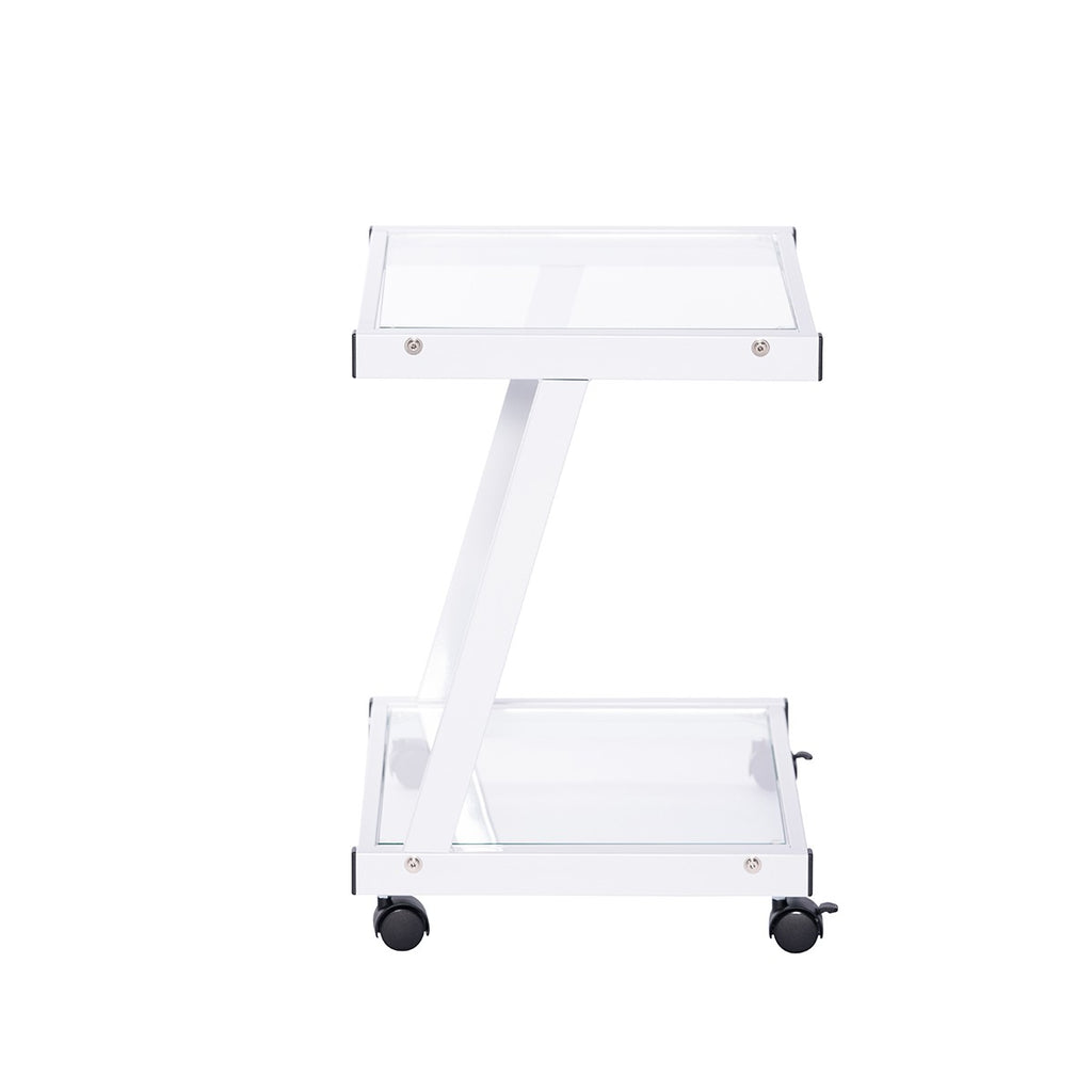White and Clear Glass Rolling Printer Cart