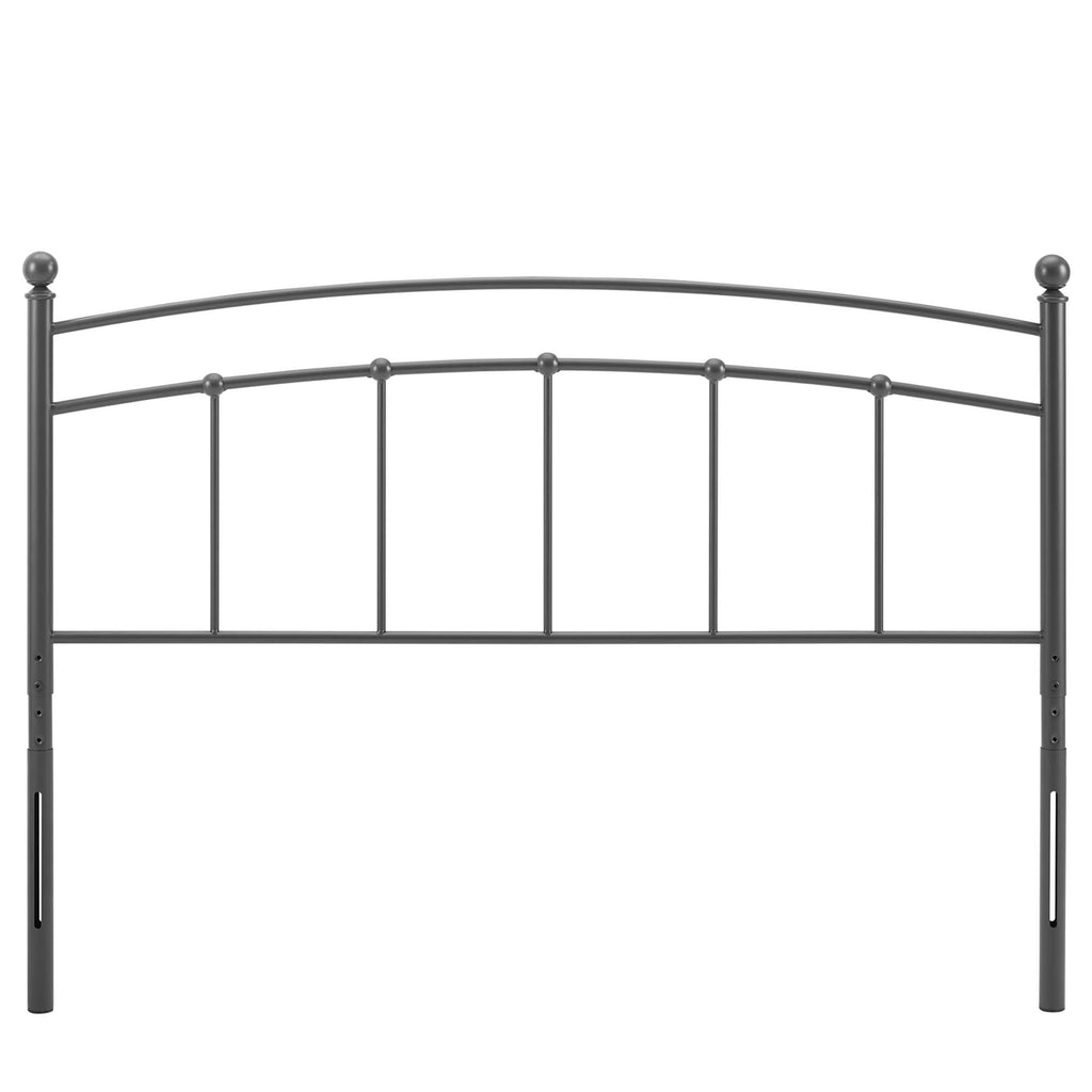 Introduce charming modern farmhouse style to a kid's bedroom, college dorm, or guest room with the Abigail Metal Twin Headboard. Bringing vintage modern appeal and rustic style to a space, this metal headboard creates a neutral backdrop for a variety of bedding choices. Featuring an arched shape, spindle detail, and finials, this twin size headboard is crafted with durable powder-coated iron for a lasting construction. This height adjustable headboard is complete with seven different mounting positions allowing it to fit most twin bed frames. Assembly Required. Set Includes: One - Abigail Twin Headboard