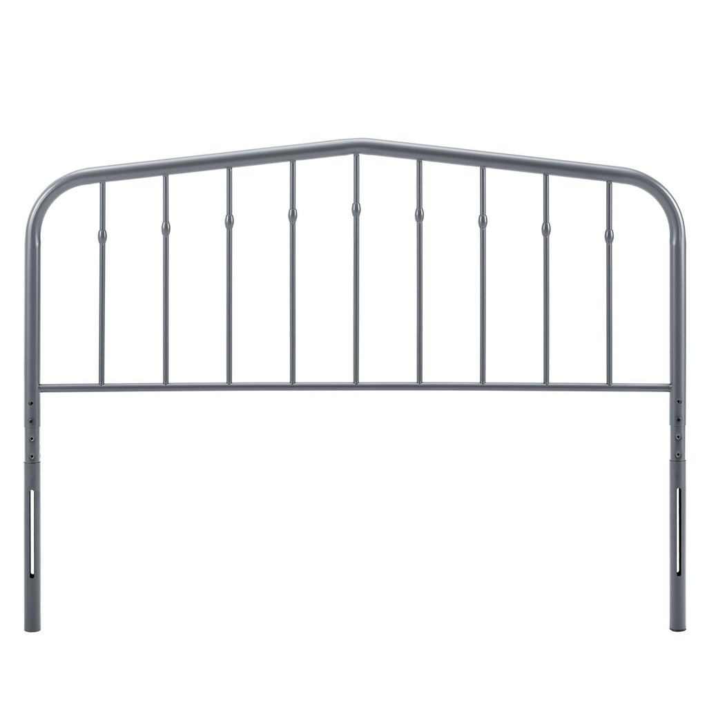 Anchor your master bedroom or guest bedroom with the refreshing style of the Lennon Metal King Headboard. Putting a contemporary modern twist on the popular cottage farmhouse design, this headboard features a streamlined silhouette with an arched shape, sleek spindles, and finial accents. Complete with a powder-coated finish, this headboard for king beds is crafted with sturdy iron metal for a durable, lasting construction. Create an aesthetic backdrop for all kinds of bedding styles with a height-adjustable headboard that features seven different mounting positions. Assembly required. Set Includes: One - Lennon King Headboard