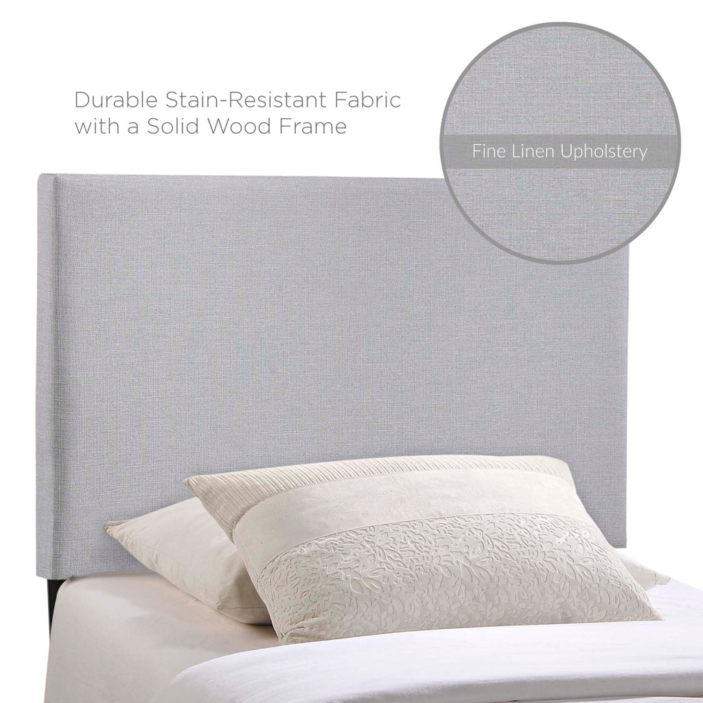 Enhance your bed of choice with a spaciously designed Modway Region Linen Fabric Upholstered Twin Headboard. Region Twin Headboard captures the expansive moments of restful nights with an elegance that doesn�t detract from the simplicity of the design. Made of particleboard with solid wood poles and fine linen fabric upholstery, rejoice with a contemporary design that admirably complements your contemporary d�cor and most twin beds. Set Includes: One - Region Twin Headboard