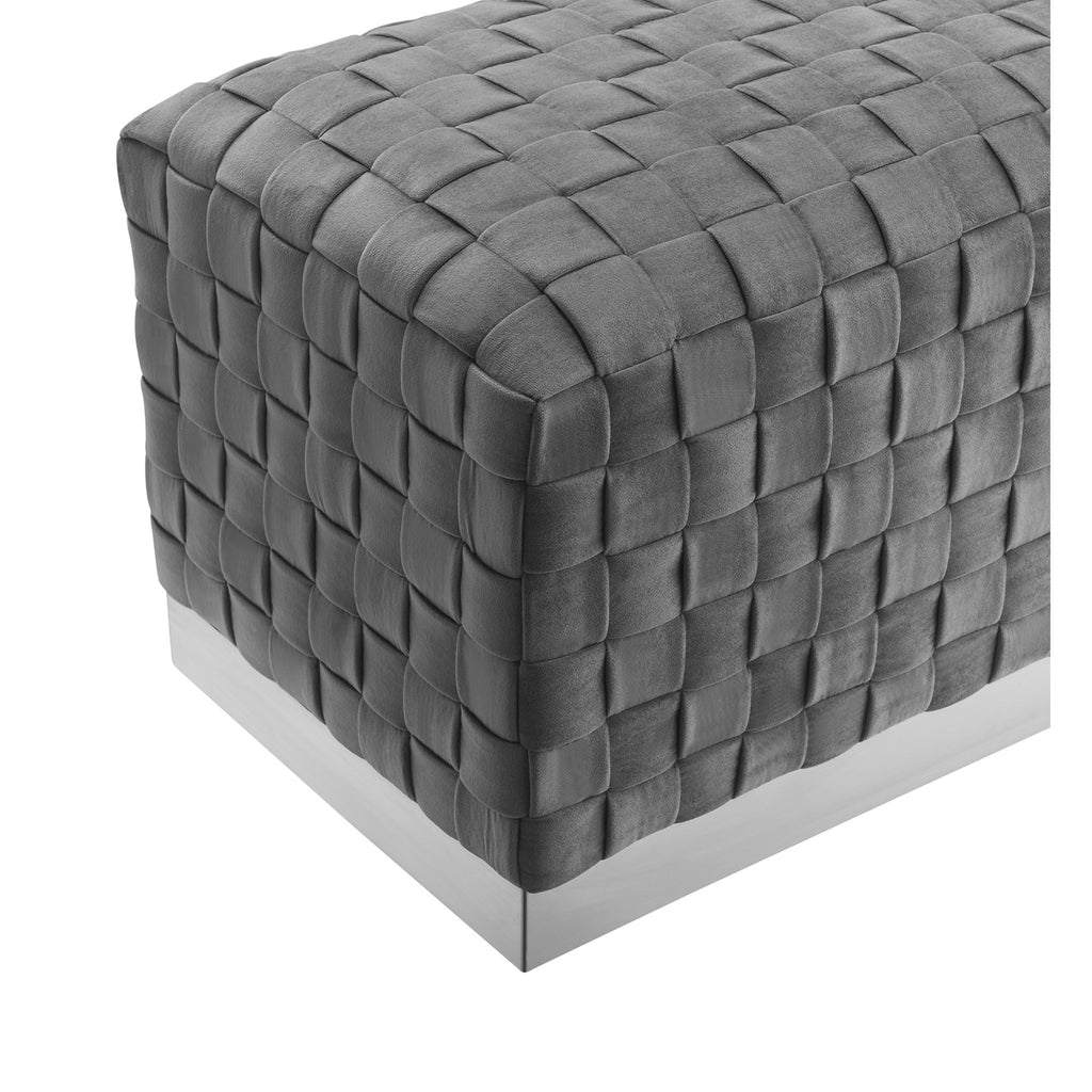 Add a good looking decorative accent to your space that is also practical for seating. A silver metal frame is finished off with a gray upholstery seat that is the epitomy of quality construction and design. Expertly upholstered with padding in a soft solid color velvet, this bench is as comfortable as it is good looking. Adding this bench to the end of your bed is a great idea to help you get ready in the morning. Easy to blend into most any room, a bench is a way to add a good looking accent to your space that can also be practical and useful. . 17.3" H x 39.7" W x 17.3" D