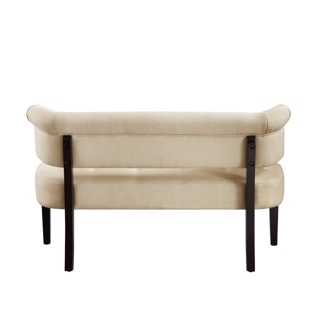 48" Beige And Black Upholstered Linen Bench