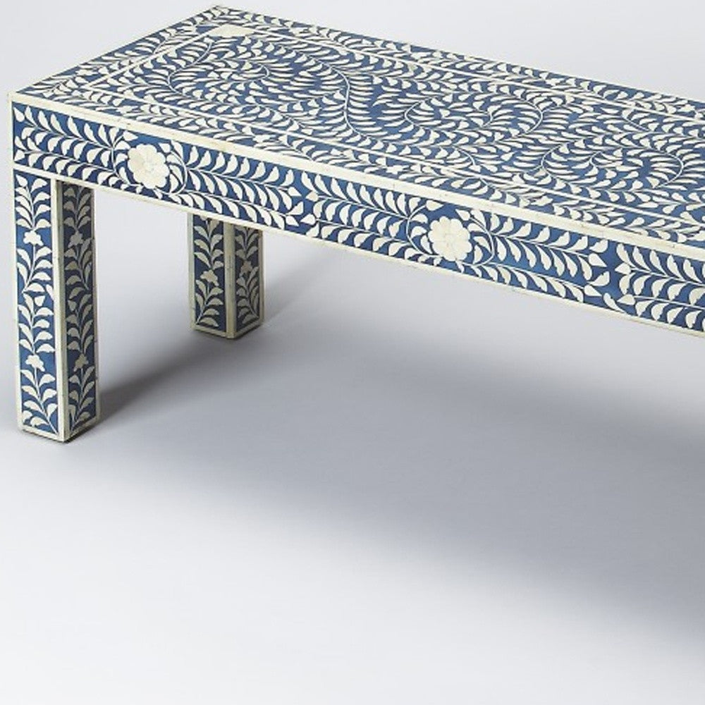 blue ivory bone inlay bench, ivory bone inlay bench, blue ivory bone inlay, blue ivory bone, ivory bone inlay