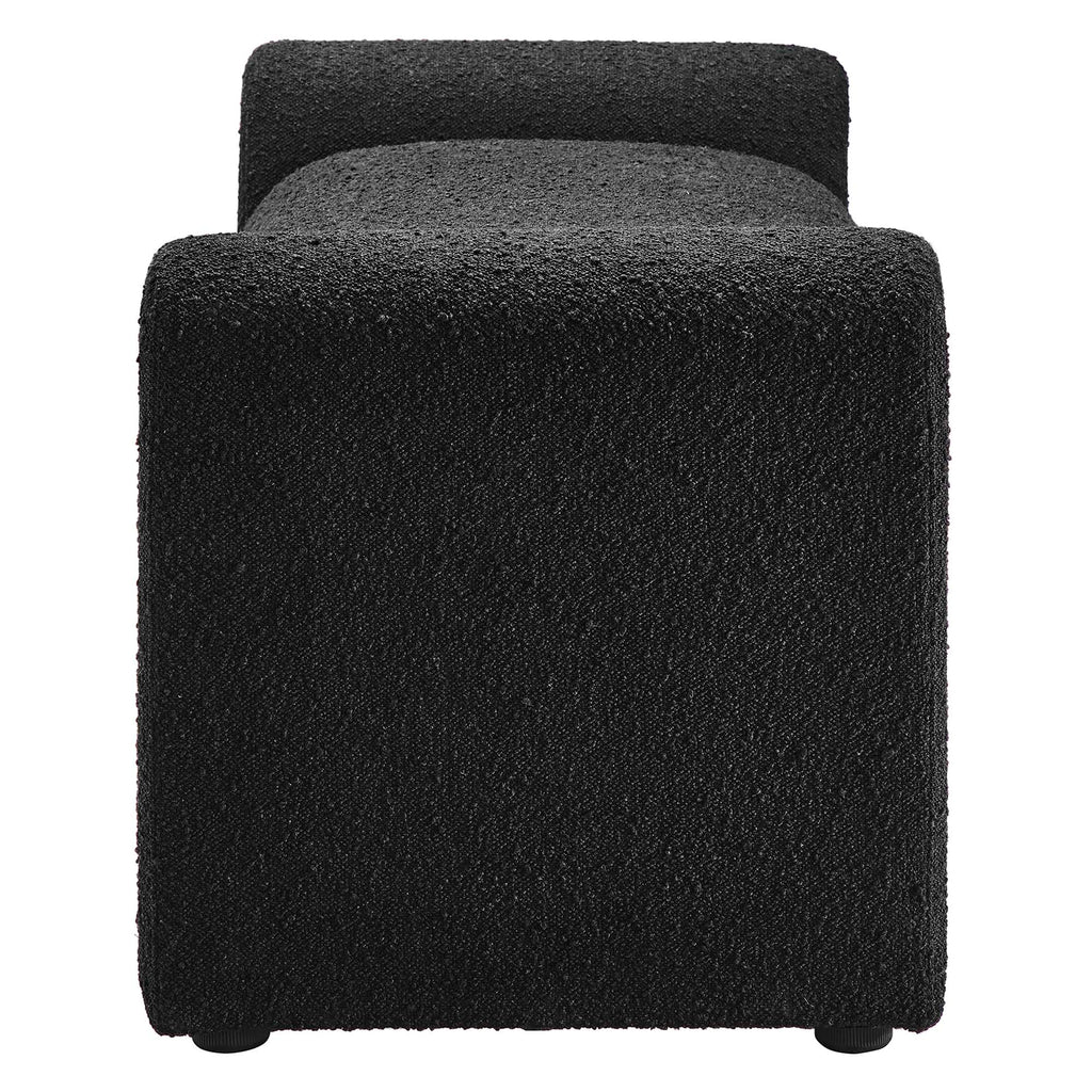 Divulge in the luxe splendor of the one-of-a-kind Waverly Boucle Fabric Bench. This accent bench features a unique, wavy shape complete with bent lines and rounded edges. With dense foam padding for superior comfort, this bench is upholstered in boucle fabric with a charming nubby texture. The cushion is removable and features a removable cover to make cleaning a breeze. The bench seat creates an inviting look and offers superior comfort while resting and relaxing. The adjustable non-marking foot pads elevate this accent bench to perfectly fit your space and protect your floors. With its beautiful silhouette and cozy comfort, this boucle bench is a stylish piece for the living room, bedroom, office, or reception area. No assembly required. Weight Capacity: 661 lbs. Set Includes: One - Waverly Boucle Fabric Bench