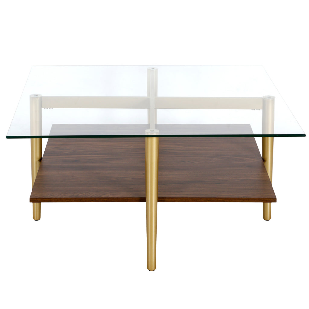 32" Brown And Gold Glass And Steel Square Coffee Table With Shelf