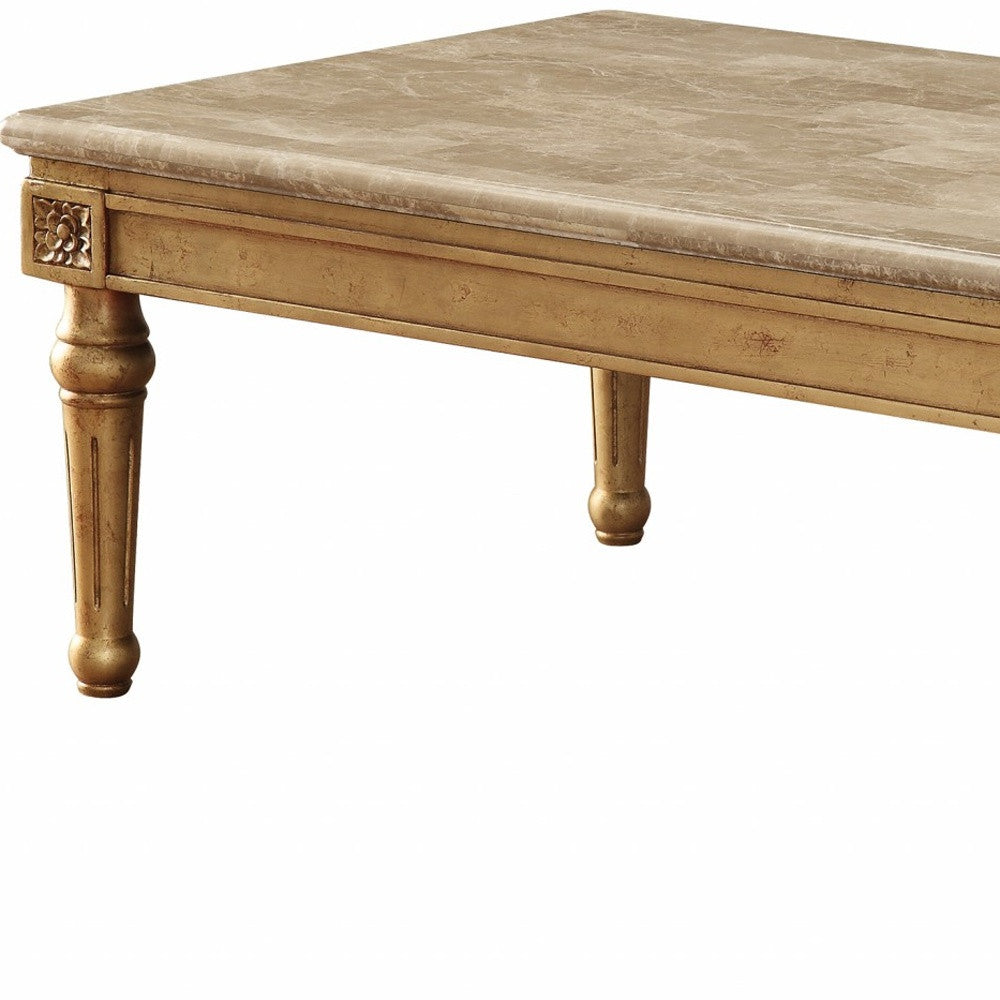 32" X 57" X 20" Marble Antique Gold Wood Coffee Table