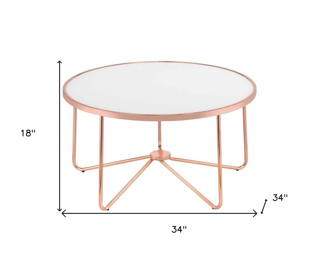 34" X 34" X 18" Frosted Glass And Rose Gold Coffee Table