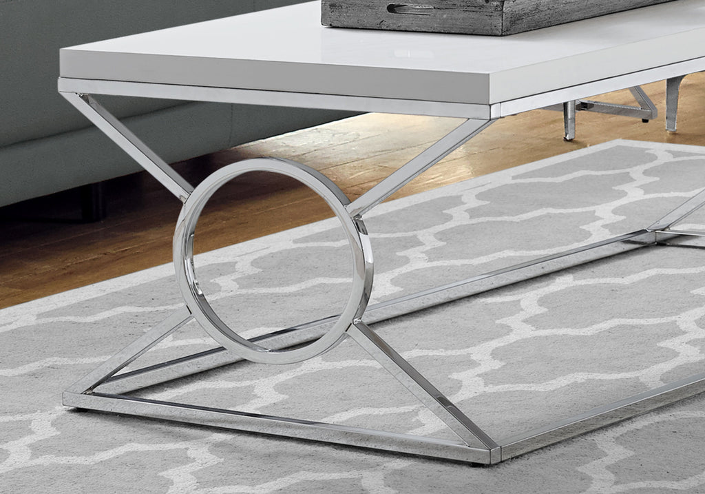 This good looking 44-inch white and silver iron coffee table is not only practical, but good looking and built to last. A silver iron frame is finished off with a white manufactured wood top that is the epitome of quality construction and design. This classic rectangular table will be a great accent in any room it has a fresh design that will definitely breathe some fresh air into your interior. This coffee table is the sturdy, reliable and stylish answer to your living room needs. 18.5-inch H x 44-inch W x 22-inch D