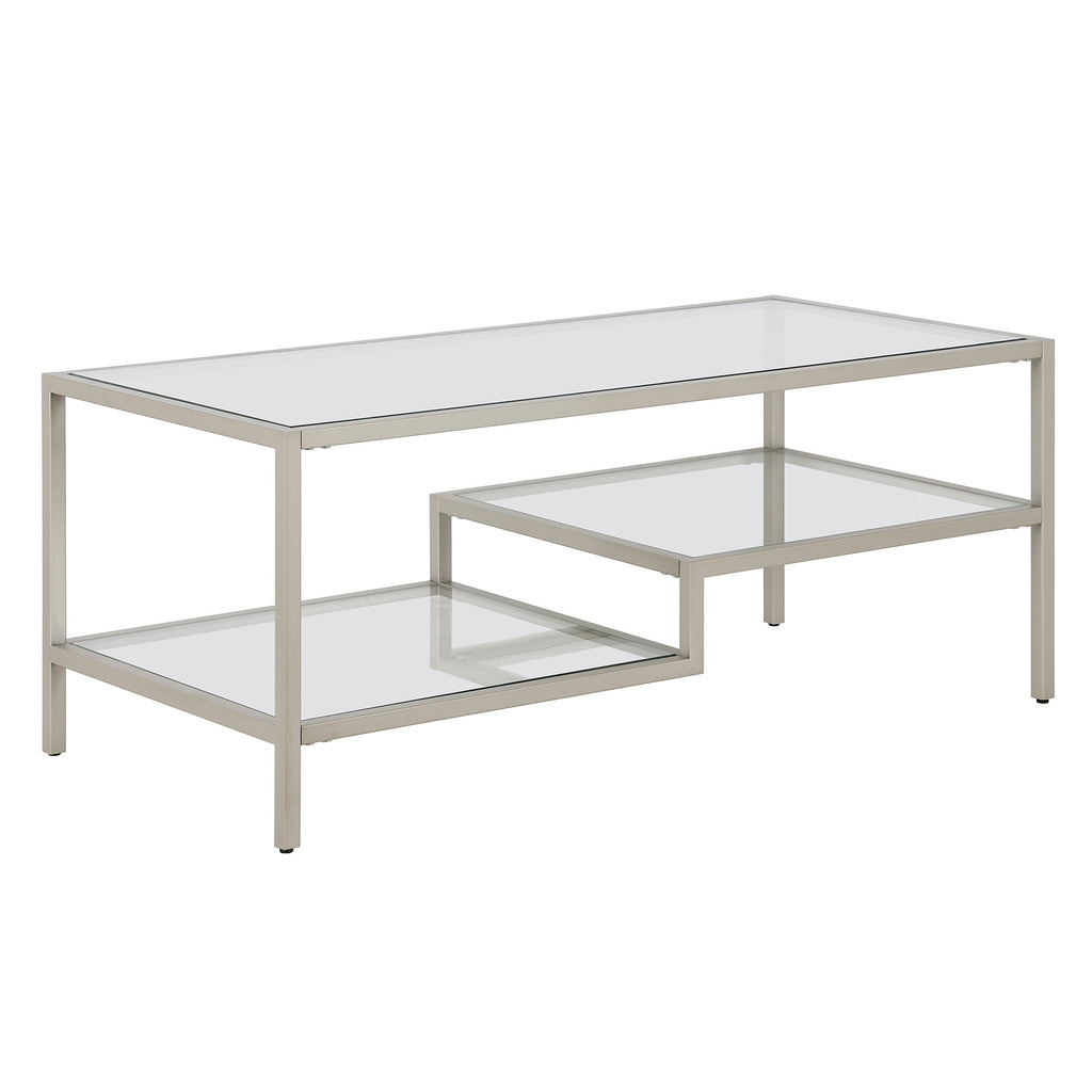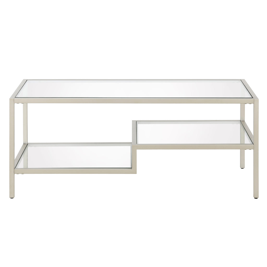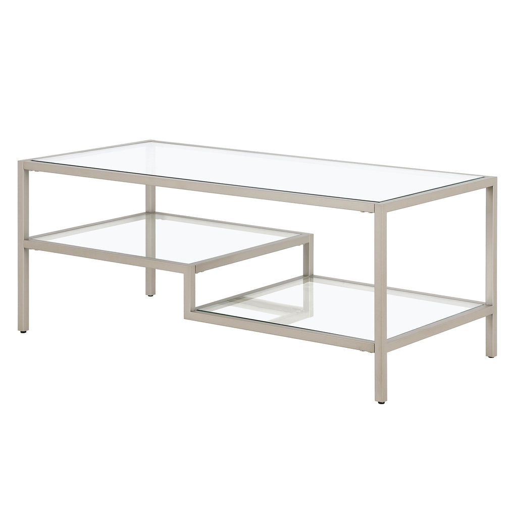 45" Silver Glass And Steel Coffee Table With Two Shelves
