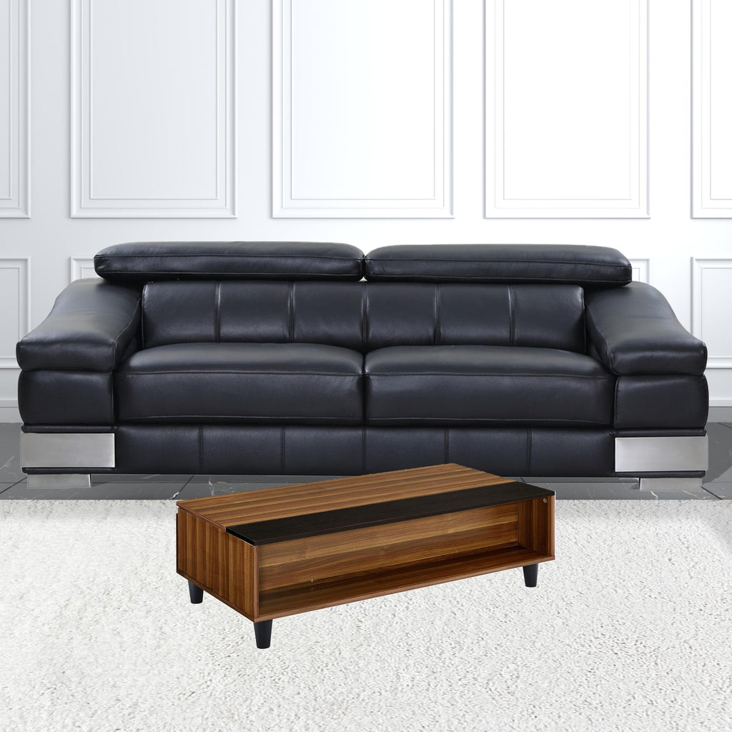 47" Walnut And Black Rectangular Lift Top Coffee Table With Shelf