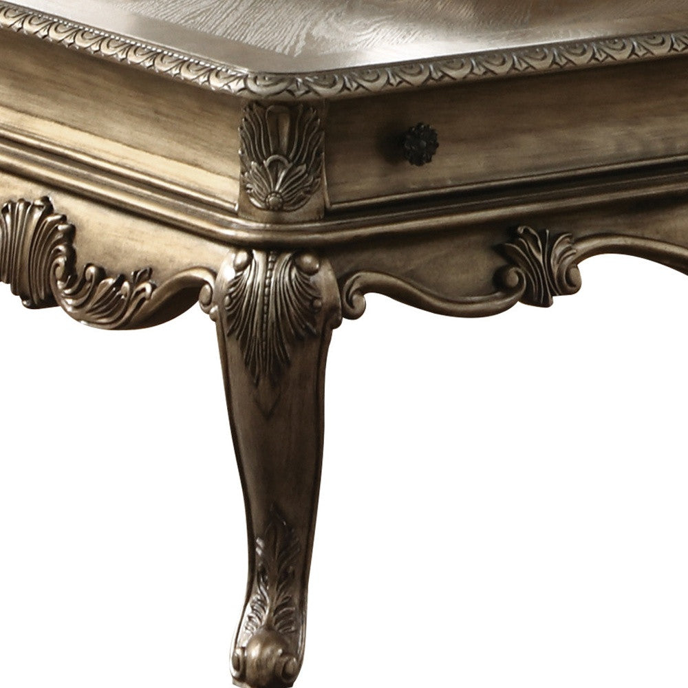 This good looking 52-inch oak solid and manufactured wood coffee table with two drawers is not only practical, but good looking and built to last. Made of solid and manufactured wood, the oak coloration throughout gives this piece an updated and refreshing look. This rectangular table is an classic yet updated way to accent your room. Queen anne legs are a sign of high quality and classic construction. It has a fresh design that will definitely breathe some fresh air into your interior. This coffee table is the sturdy, reliable and stylish answer to your living room needs. 19-inch H x 52-inch W x 30-inch D