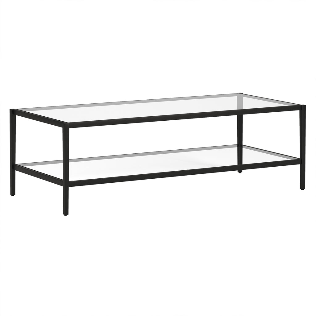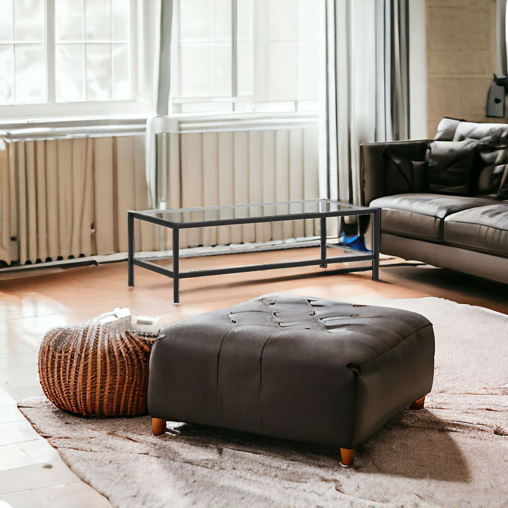54" Black Glass And Steel Coffee Table With Shelf