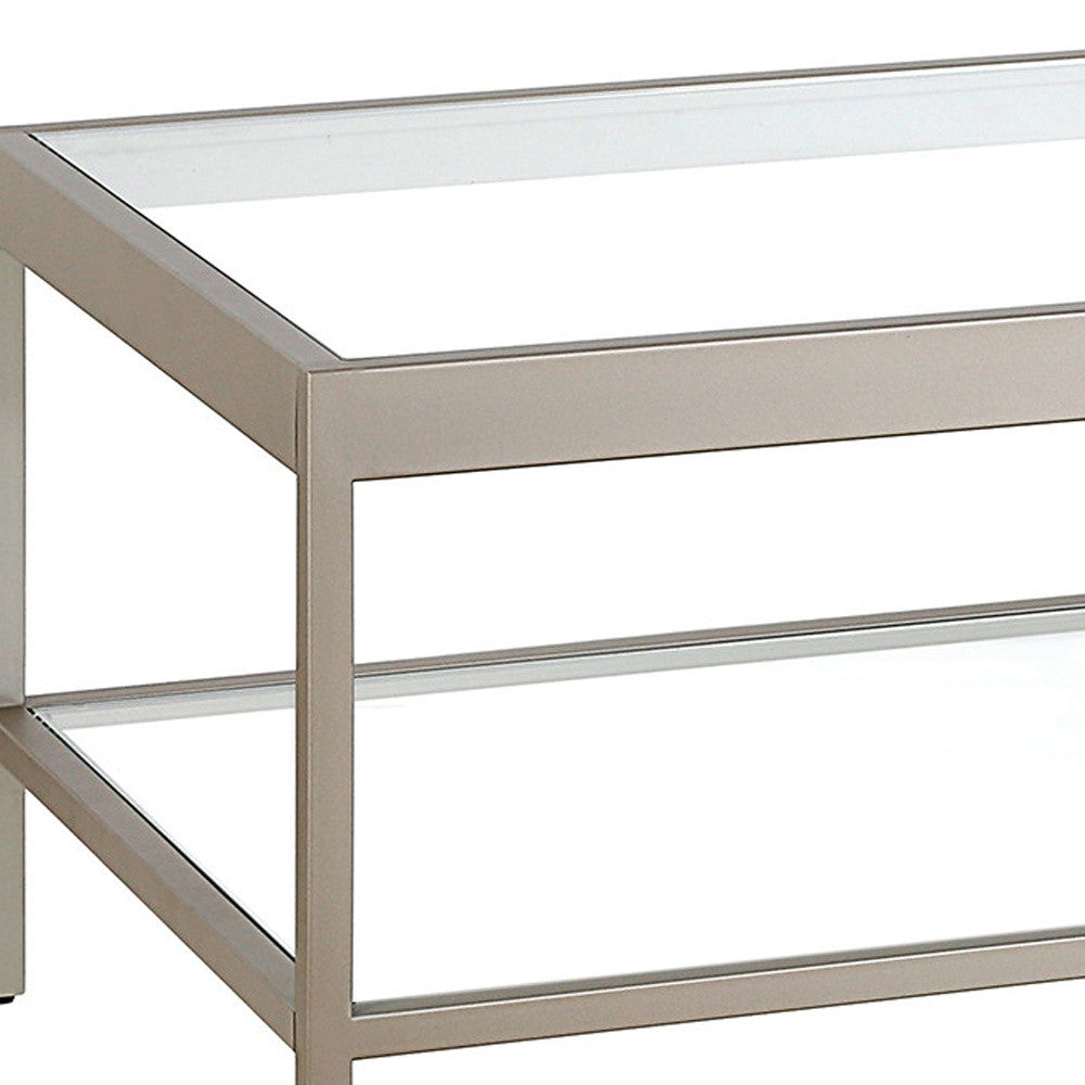 54" Clear And Black Glass And Steel Coffee Table With Shelf