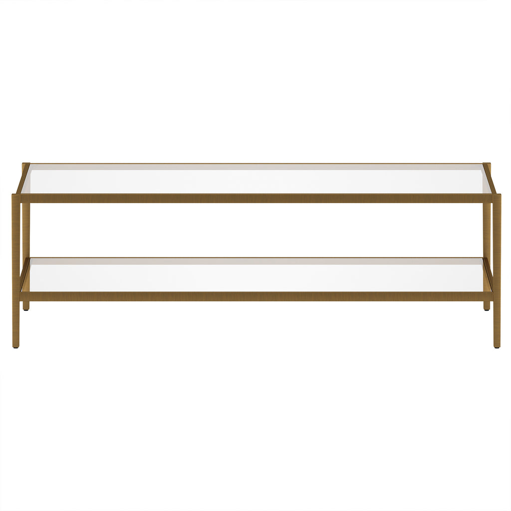 54" Clear And Gold Glass And Steel Coffee Table With Shelf