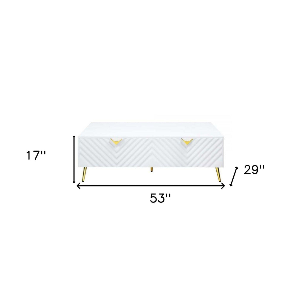Make a statement with the 58-inch champagne rectangular coffee table and infuse a dash of character and personality into your space. This table is made from manufactured wood in a champagne color throughout the base and top. This rectangular table is an classic yet updated way to accent your room. If you're looking for something that can fit into a living area, bedroom, or office, this coffee table is for you. This coffee table is the sturdy, reliable and stylish answer to your living room needs. 20-inch H x 58-inch W x 33-inch D